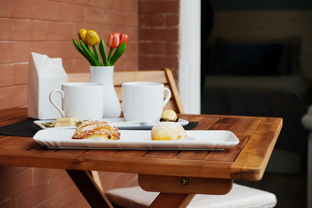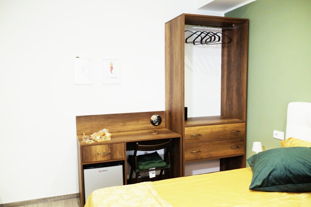 Alcune stanze vantano anche di un grazioso terrazzino privato, ideale per una colazione all’aria aperta o per rilassarsi dopo una giornata alla scoperta della città.